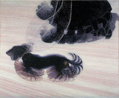 Marinetti was also very political, promoting nationalism, fascism, and freedom from Austria. His manifesto proclaimed, “We will glorify war —the world's only hygiene —militarism, patriotism, the destructive gesture of freedom-bringers, beautiful ideas worth dying for, and scorn for woman.” Marinetti worked closely with Mussolini and tried to promote modern art as being Italian, nationalist, anti-foreign, and anti-Semitic. It didn’t work. Mussolini and Hitler saw modern art as degenerate. Nevertheless, Marinetti’s ideas attracted a group of young artists who became the Futurists. Many of these artists, including Marinetti fought in WWI & II, and some died.